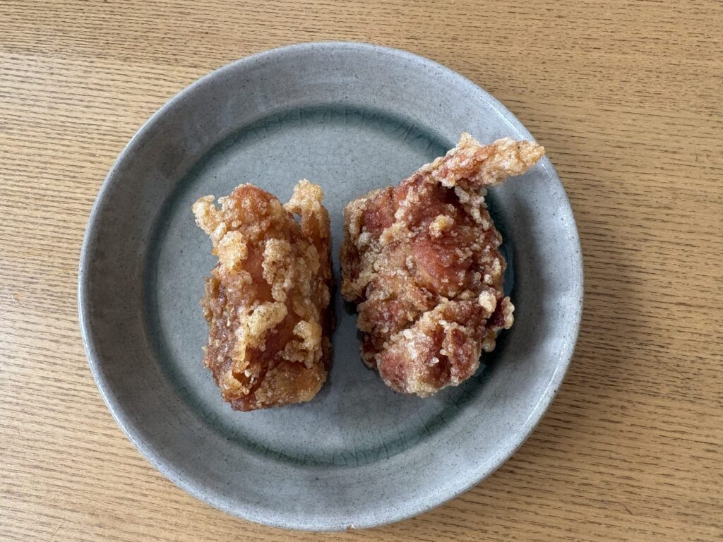 1個ずつが大きい。揚げたてを持って帰れる。「カリッともも」美味しかったです!