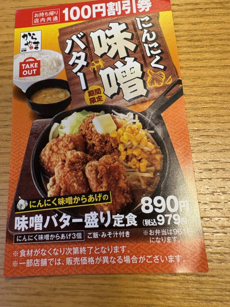 我が家ではからやまの唐揚げがすっかりお気に入りになり、優待がなくなっても100円割引券をもらえるので買いに行くことが増えました。