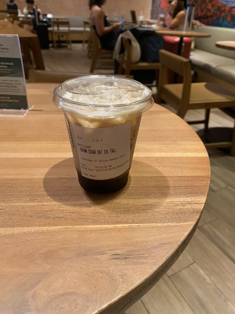 私はブラウンシュガーオーツミルクにしました。若干甘過ぎなように感じましたが、それはそれで美味しかったです。