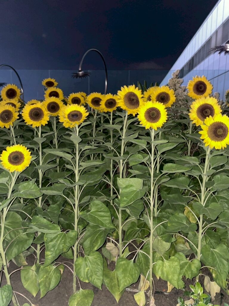 ひまわりも咲いてます。昼間はもっときれいに見えるでしょうね。