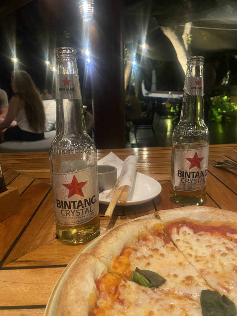 石窯で焼き上げられた本格ピザをシェアして、1日目を締めくくりました。
