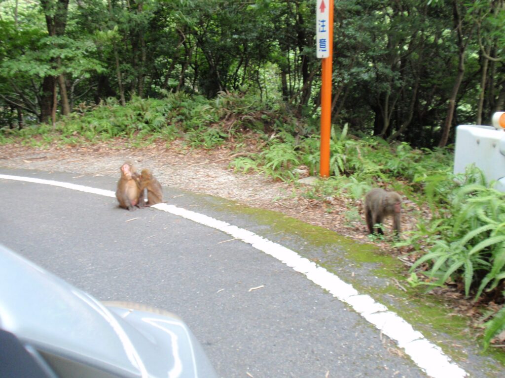 それからもうひとつ、驚いたのが――猿の親子が道の真ん中でくつろいでいたこと。