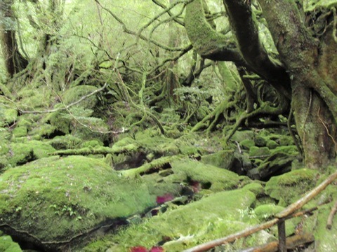 白谷雲水峡のトレッキングをしましたが、森の中は十分すぎるほど印象的で、苔が一面に広がる景色はとても神秘的で、ジブリの「もののけ姫」のような世界です。