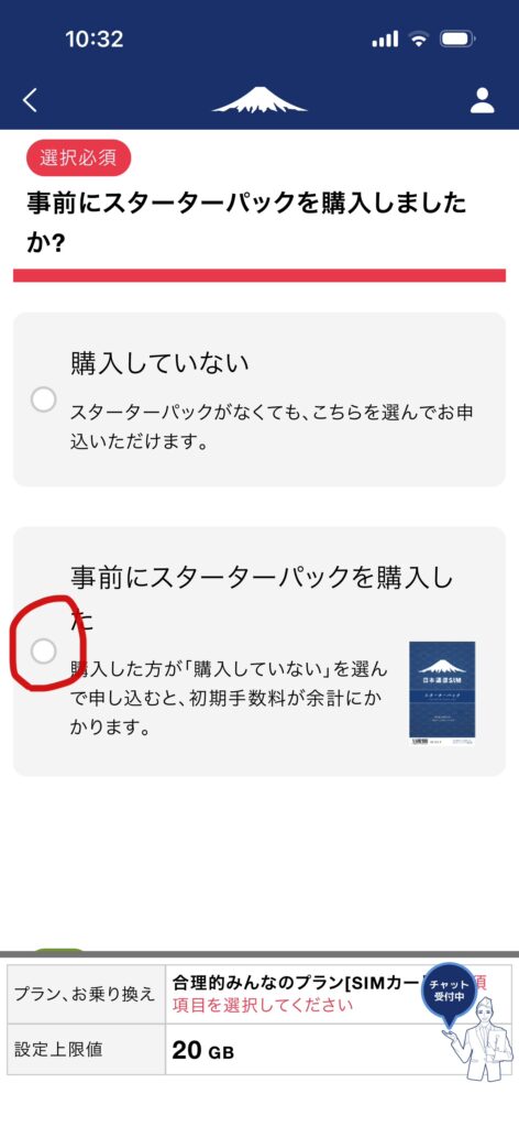 私はスマホから手数料を払って申し込み、家族はスターターパックを購入して申し込み。